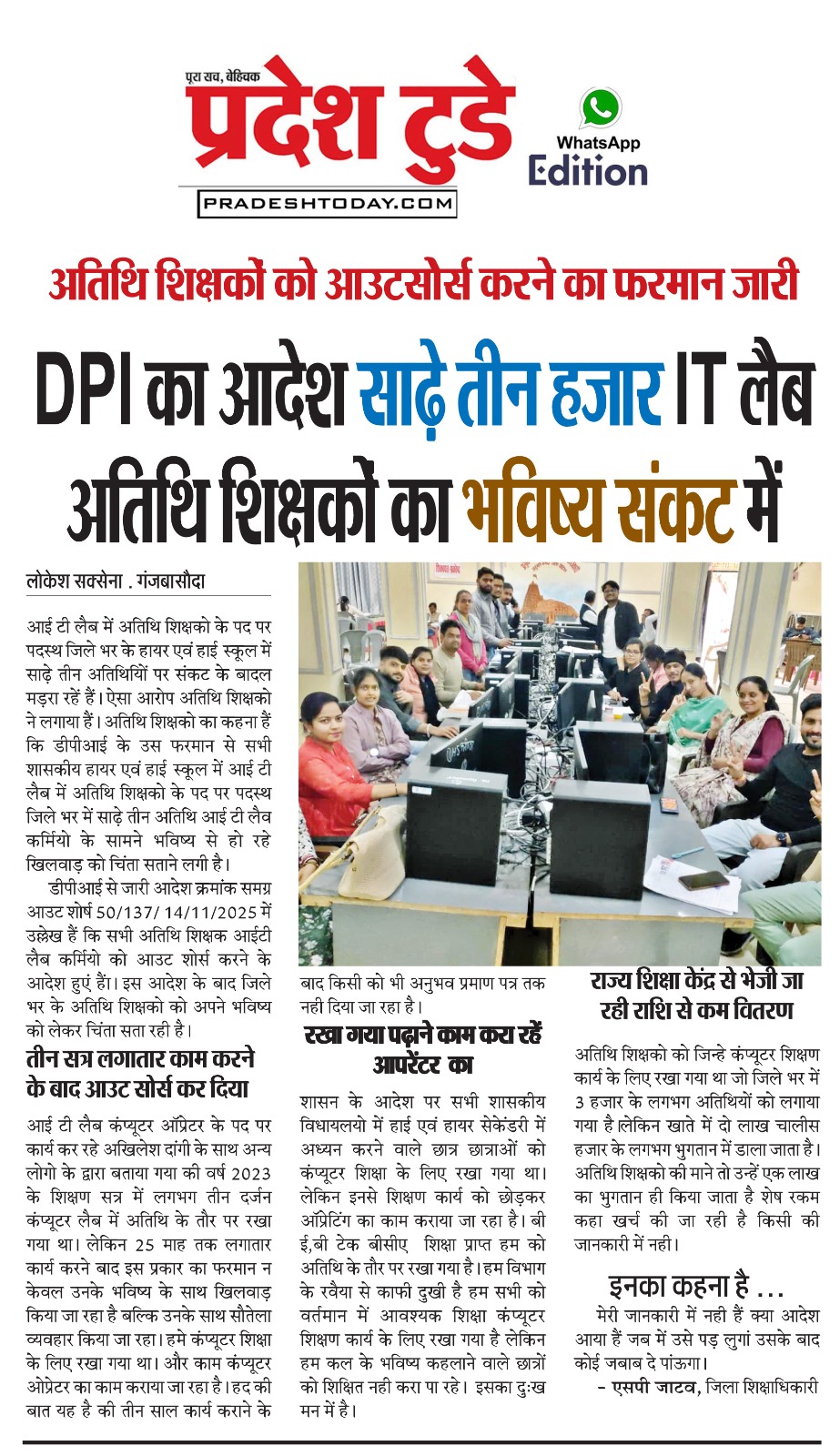 शिक्षा विभाग में अस्थायी रूप से कार्यरत ICT -Computer instructors का नियामिकरण किया जाए ,या फिर संविदा नीति लागू की जाये ,मध्यप्रदेश शिक्षा विभाग में कार्यरत अल्प मानदेय में कार्यरत कर्मचारियों के लिये ,