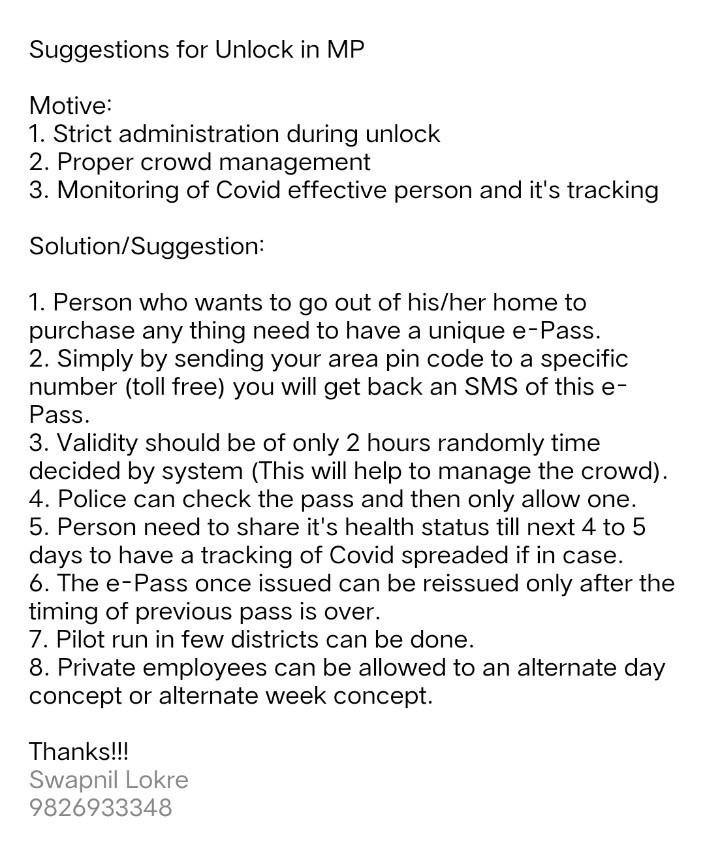 Suggest for the Process to Unlock Madhya Pradesh
