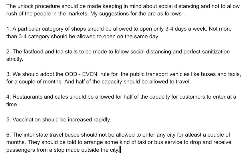 और बाजार अनलॉक करने से पहले ऐसी व्यवस्था होनी चाहिए की यदि कोई दुकानदार ज्यादा पैसे मांगता है तो उस पर तुरंत कार्यवाही हो।