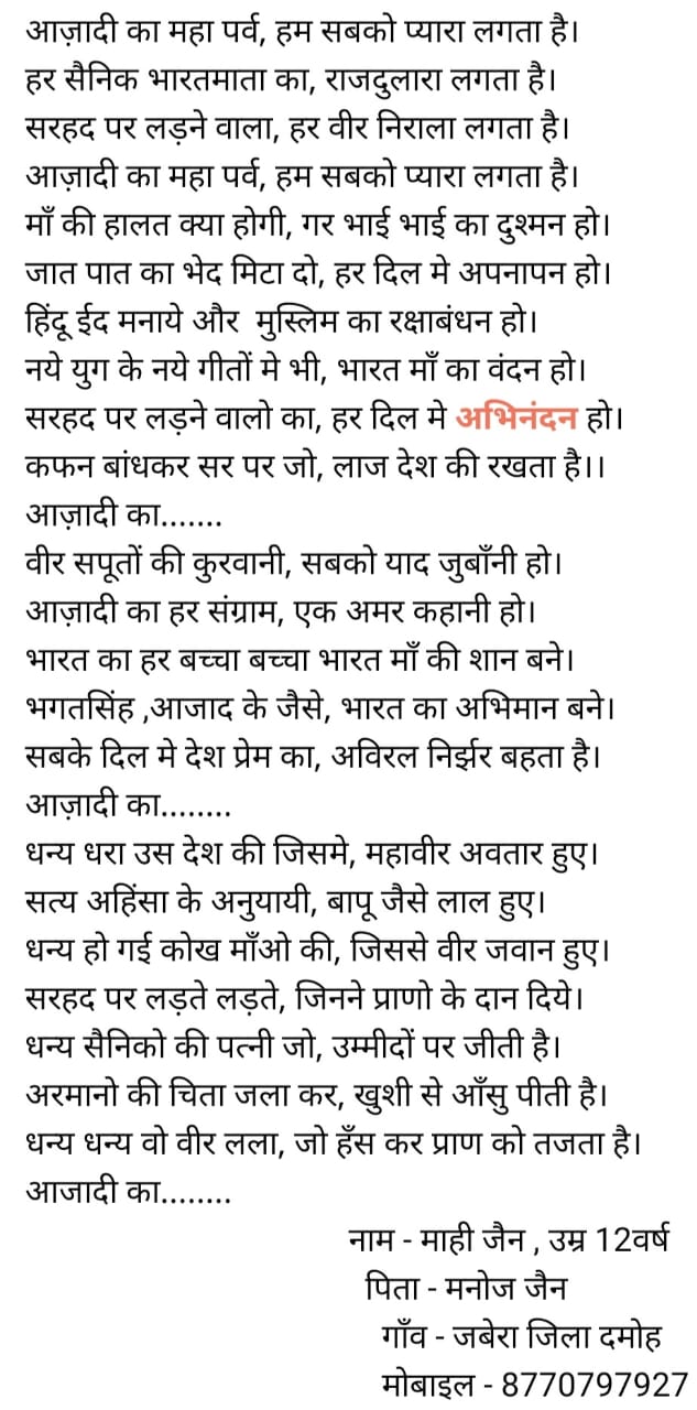 To bring awareness among the youth, students and children about the freedom struggle, Directorate of Swaraj Sansthan, Culture Department, Government of Madhya Pradesh is organising an original poetry writing competition on patriotism.
