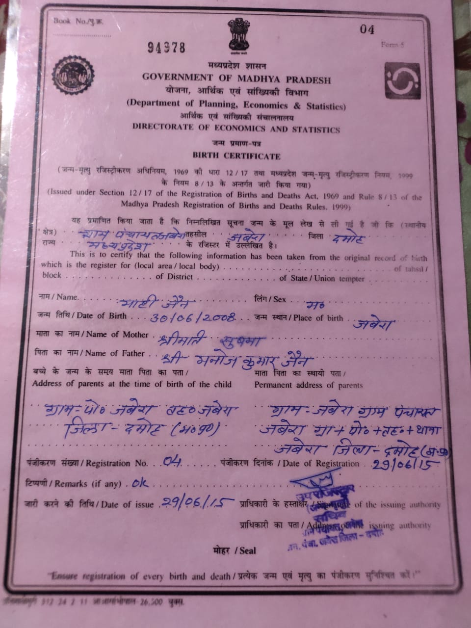 Address-Near balak baba durga ward ranipur road gothana betul Pin-460001