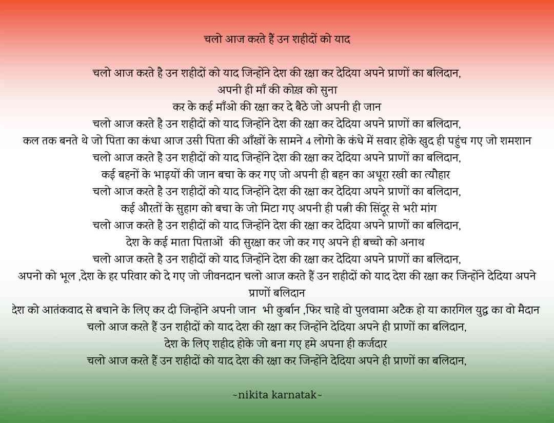 चलो करते है आज उन शहीदों को याद जिन्होंने देश की रक्षा कर देदिया,अपने ही प्राणों का बलिदान,poem-by nikita karnatak