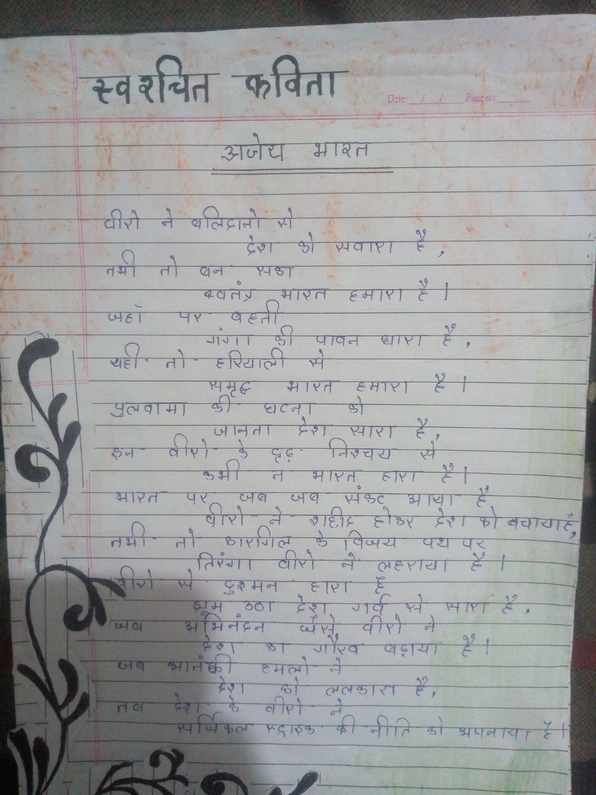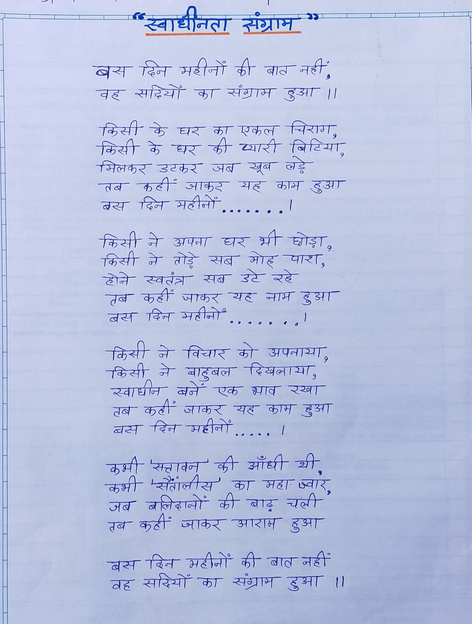 "स्वाधीनता संग्राम" शीर्षक से एक रचना।