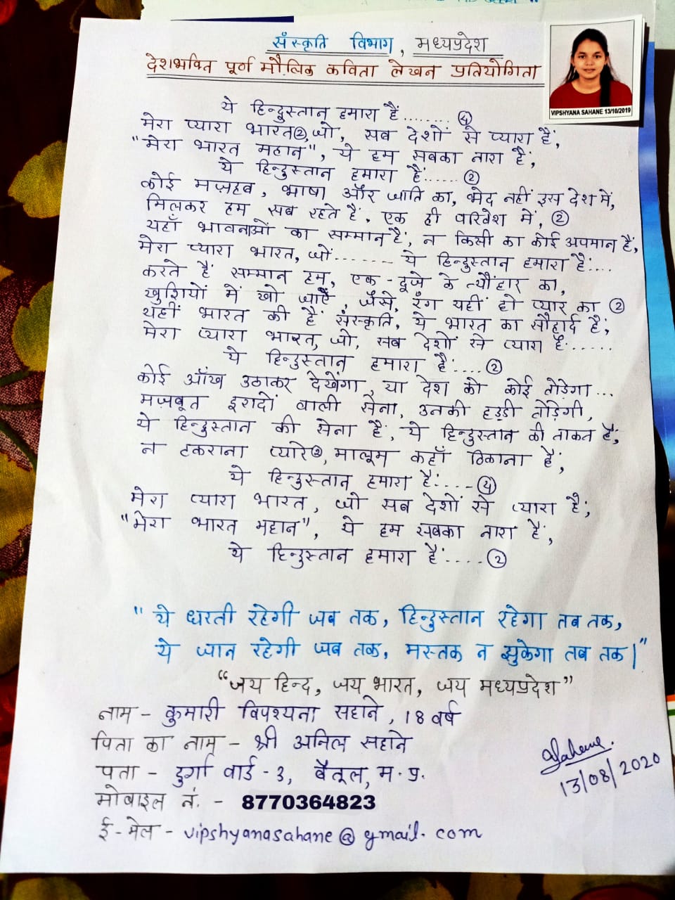 To bring awareness among the youth, students and children about the freedom struggle, Directorate of Swaraj Sansthan, Culture Department, Government of Madhya Pradesh is organising an original poetry writing competition on patriotism.