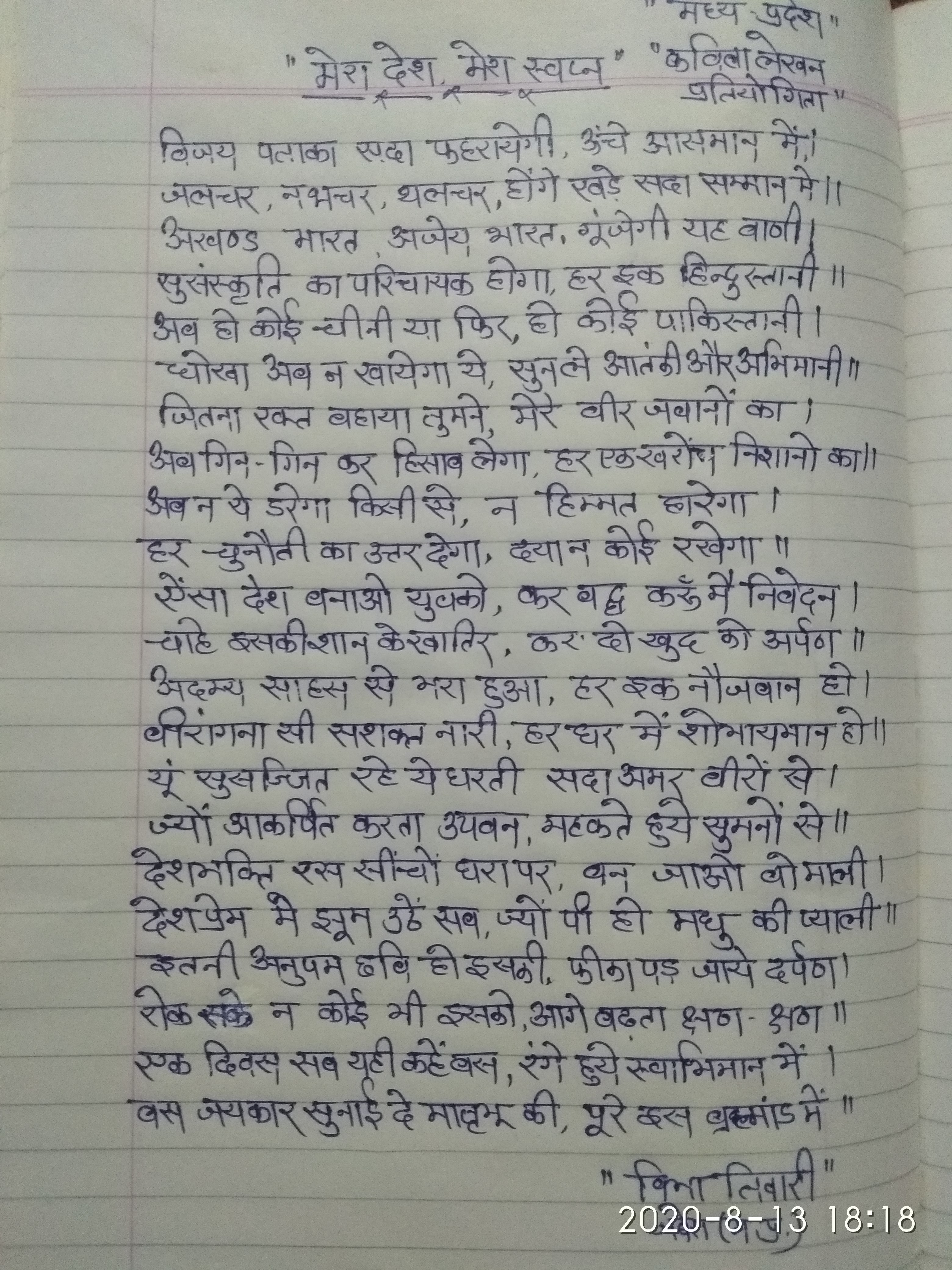 To bring awareness among the youth, students and children about the freedom struggle, Directorate of Swaraj Sansthan, Culture Department, Government of Madhya Pradesh is organising an original poetry writing competition on patriotism.