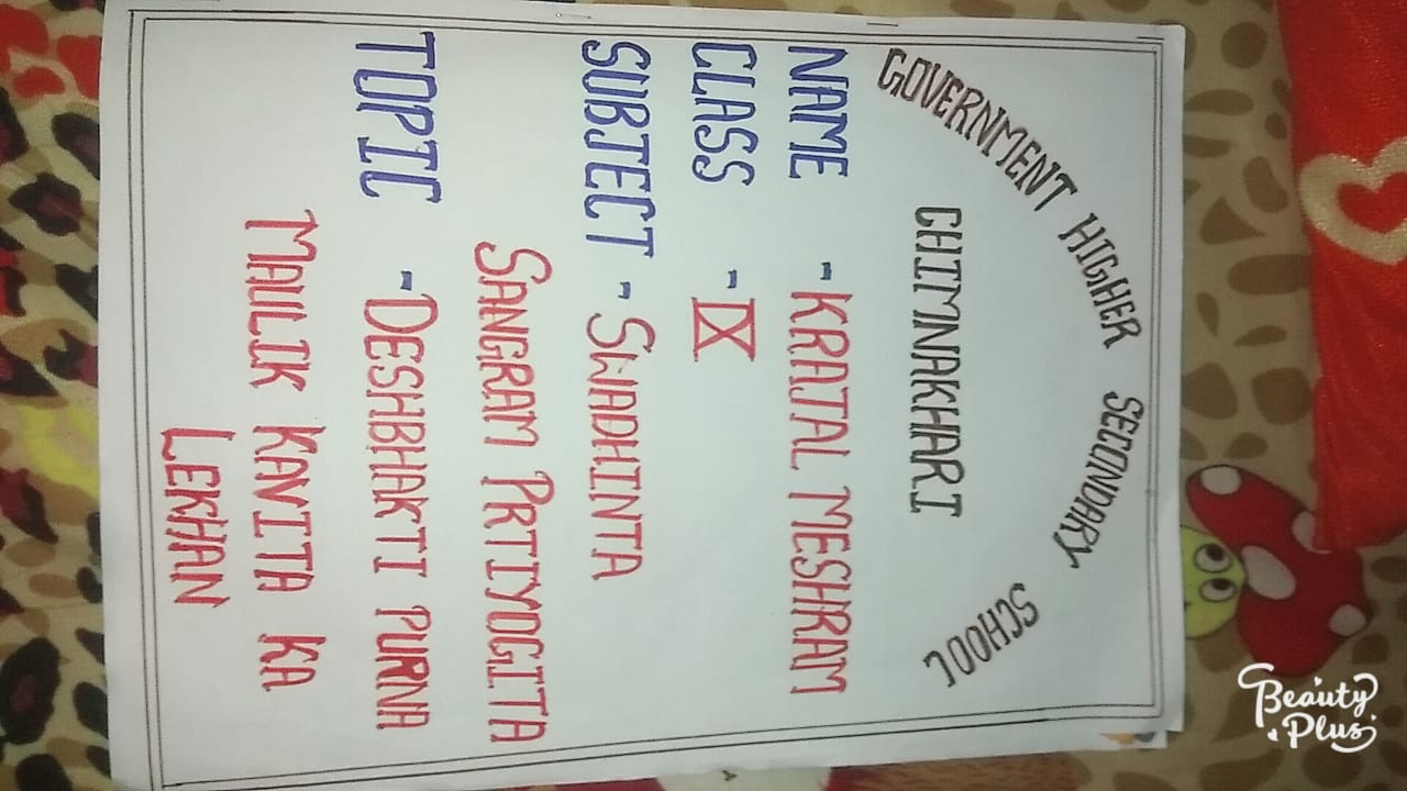 My name is krajal meshram,i am styuding class 9th,i am sending to freedom fighter poem.