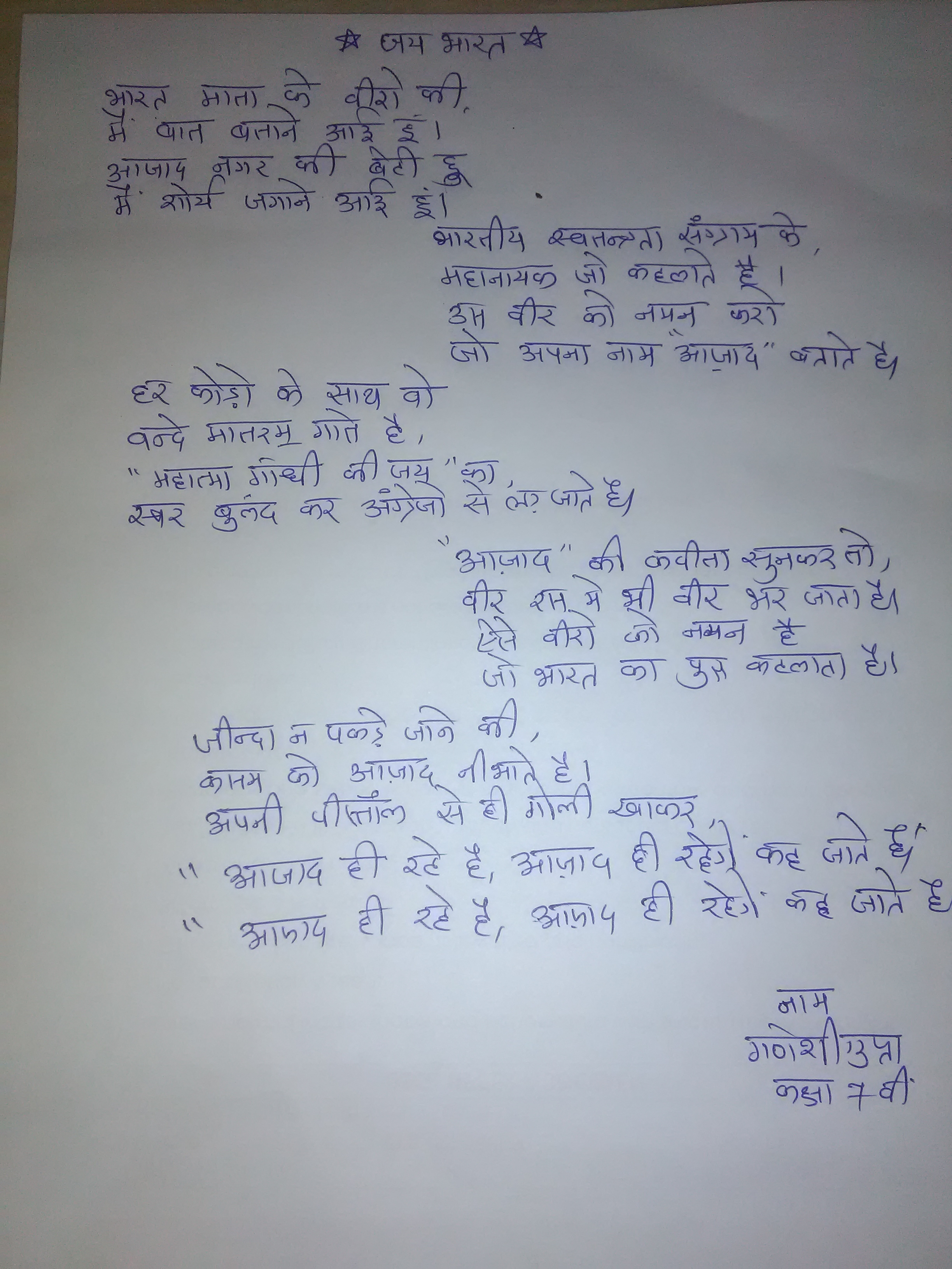 देशभक्ति पूर्ण मौलिक कविता लेखन प्रतियोगिता