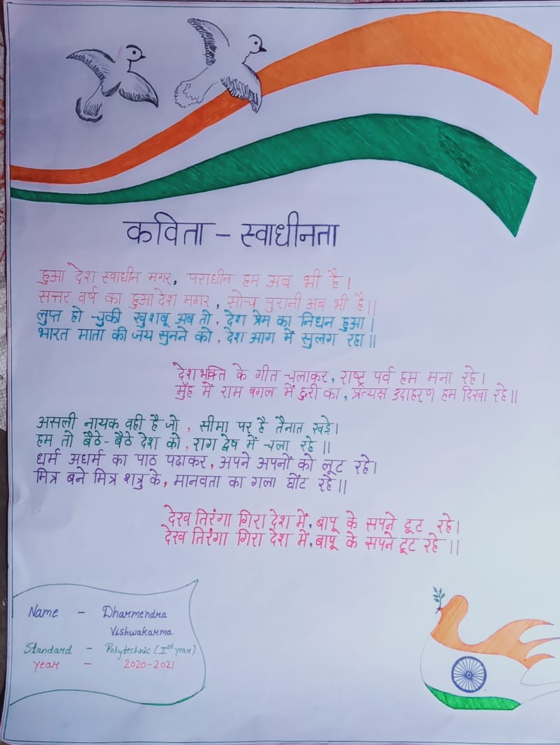 To bring awareness among the youth, students and children about the freedom struggle, Directorate of Swaraj Sansthan, Culture Department, Government of Madhya Pradesh is organising an original poetry writing competition on patriotism.