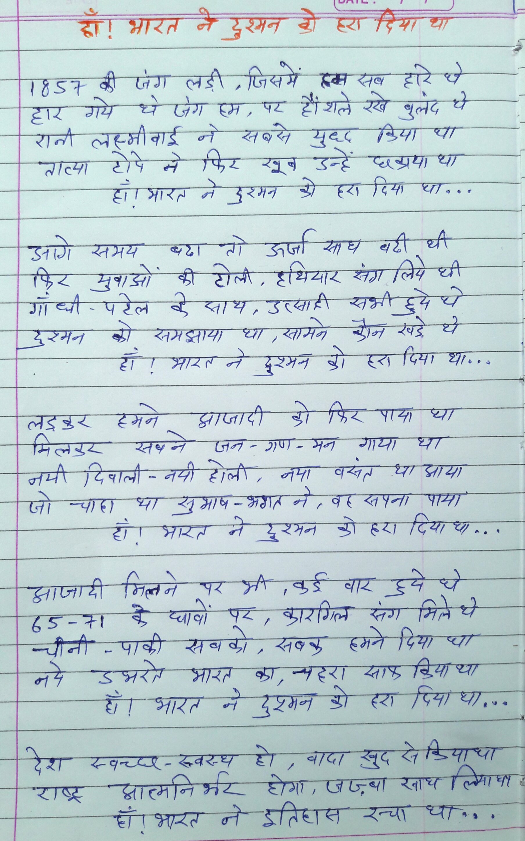 कविता शीर्षक - " हाँ! भारत ने दुश्मन को हरा दिया था "