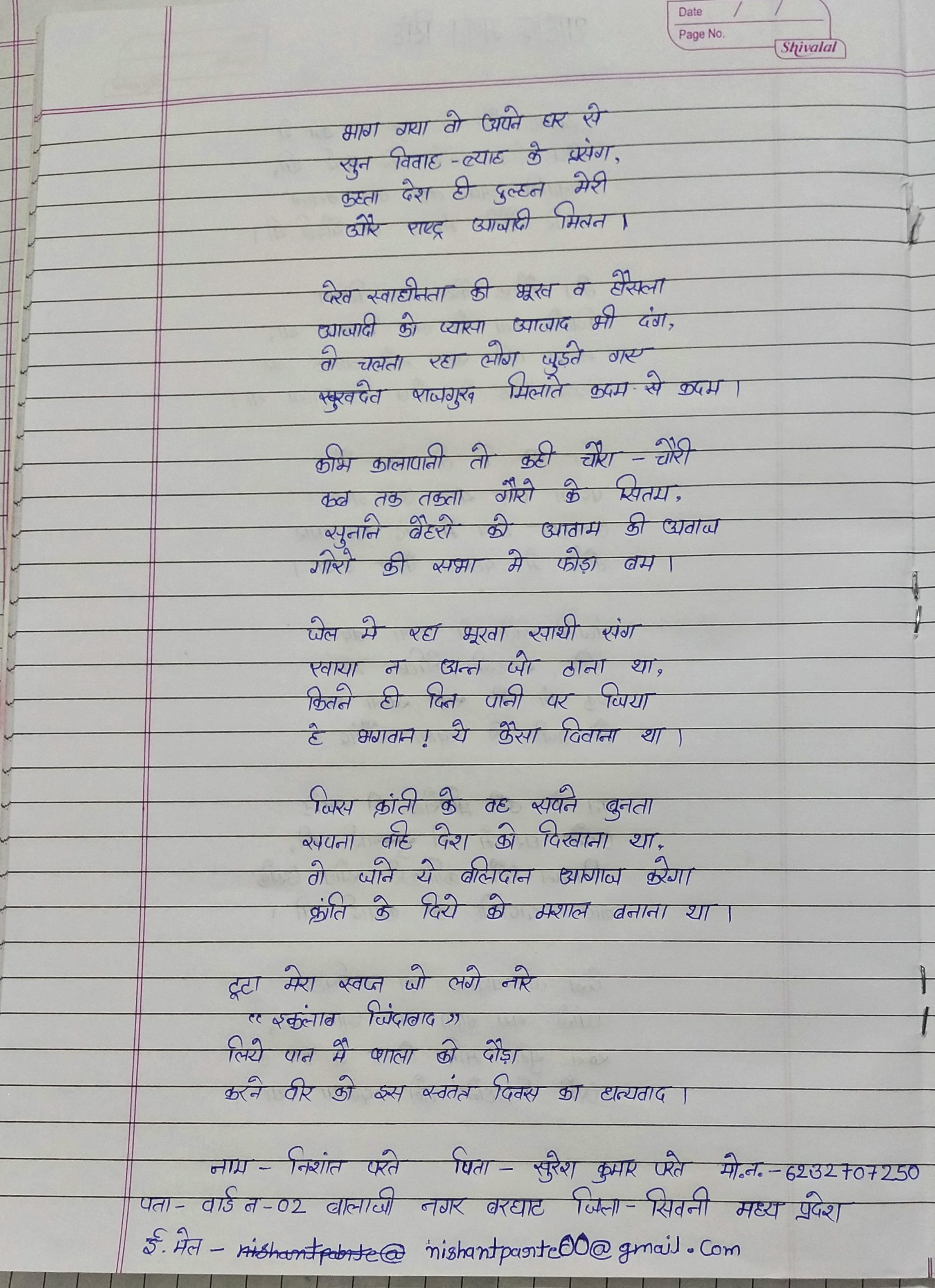 To bring awareness among the youth, students and children about the freedom struggle, Directorate of Swaraj Sansthan, Culture Department, Government of Madhya Pradesh is organising an original poetry writing competition on patriotism.