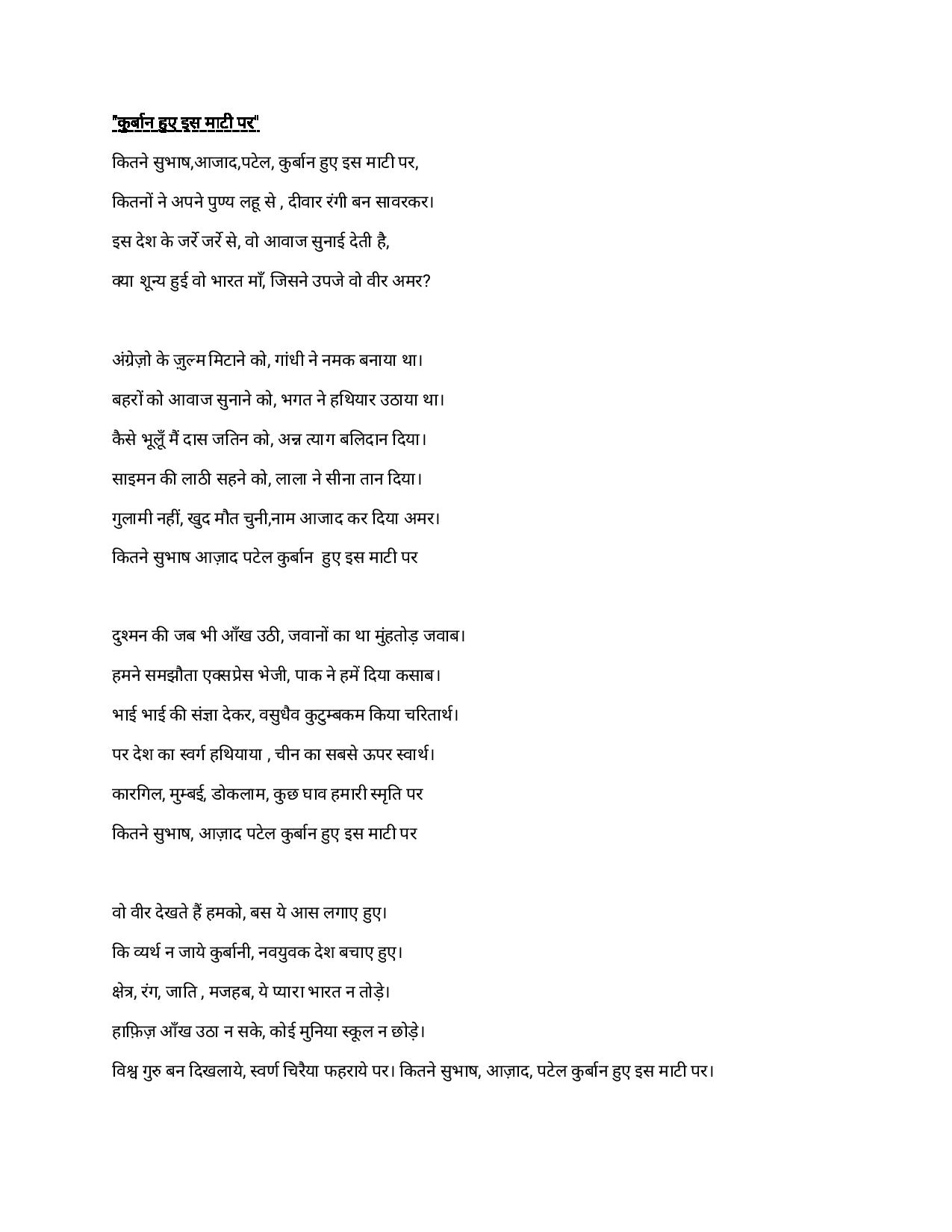 कितने सुभाष,आजाद,पटेल, कुर्बान हुए इस माटी पर,