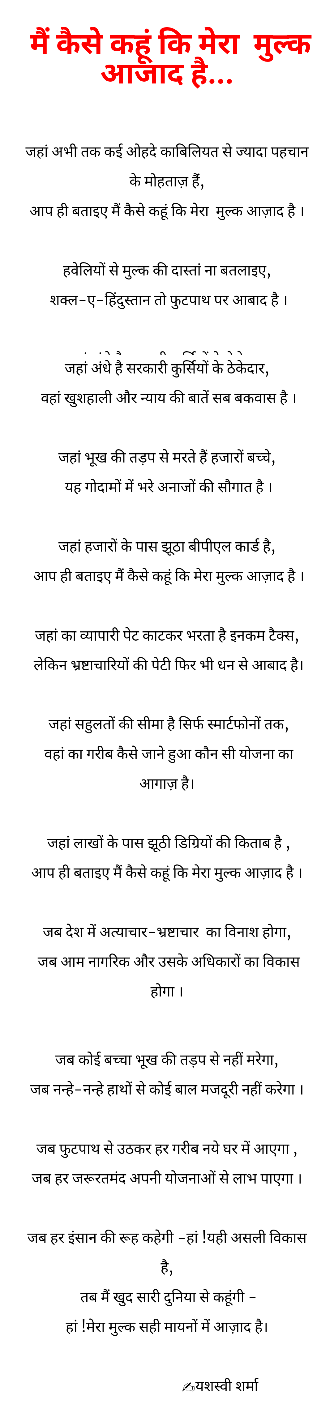 Title: मैं कैसे कहूं कि मेरा मुल्क आज़ाद है।