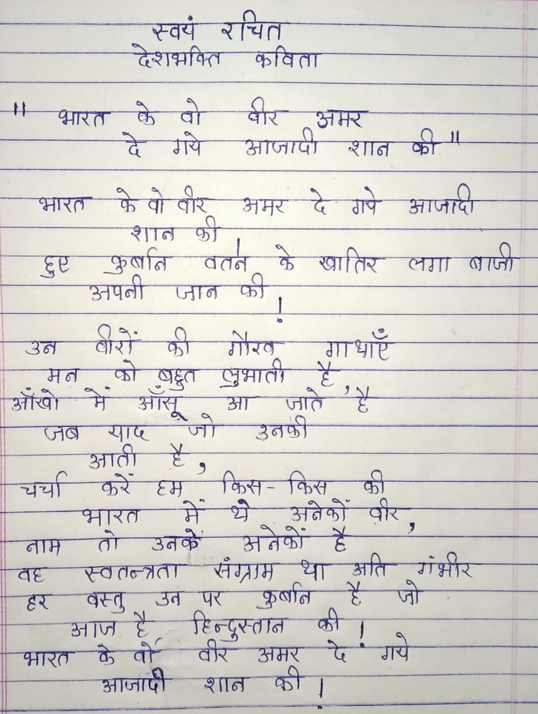 देशभक्ति पूर्ण मौलिक कविता -