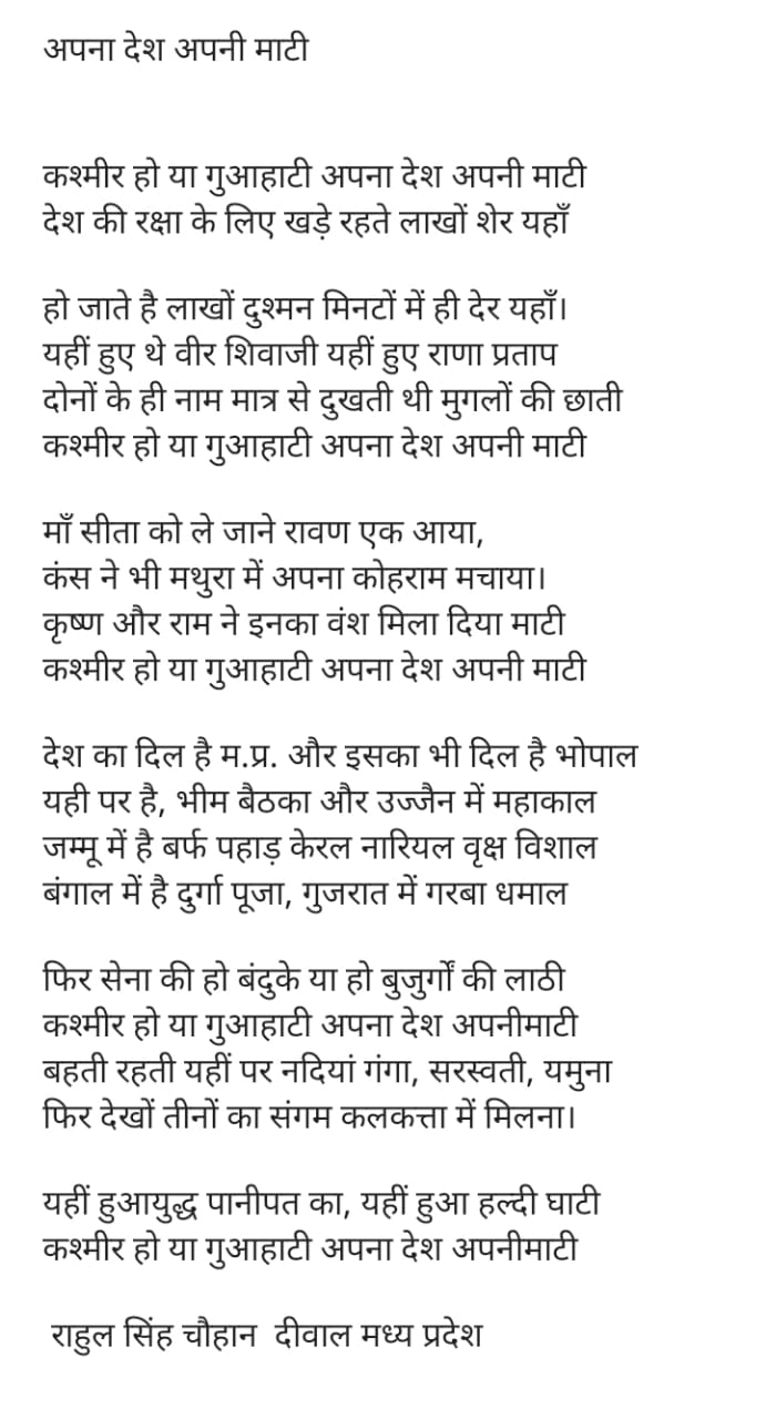To bring awareness among the youth, students and children about the freedom struggle, Directorate of Swaraj Sansthan, Culture Department, Government of Madhya Pradesh is organising an original poetry writing competition on patriotism.