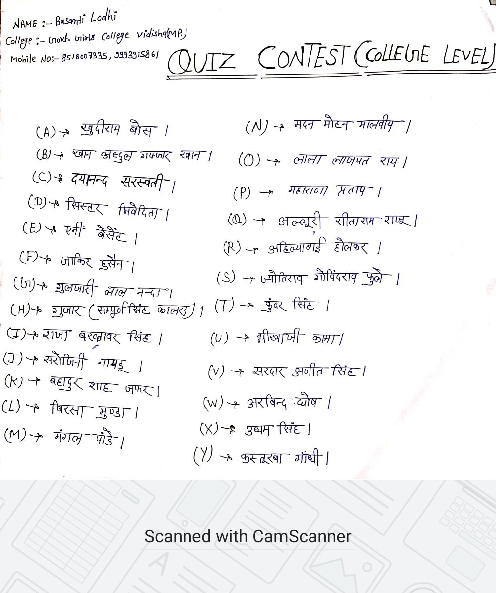 M-विपिनचद्रं पाल N-कस्तुरबा o-सुभासचंद्र बोस