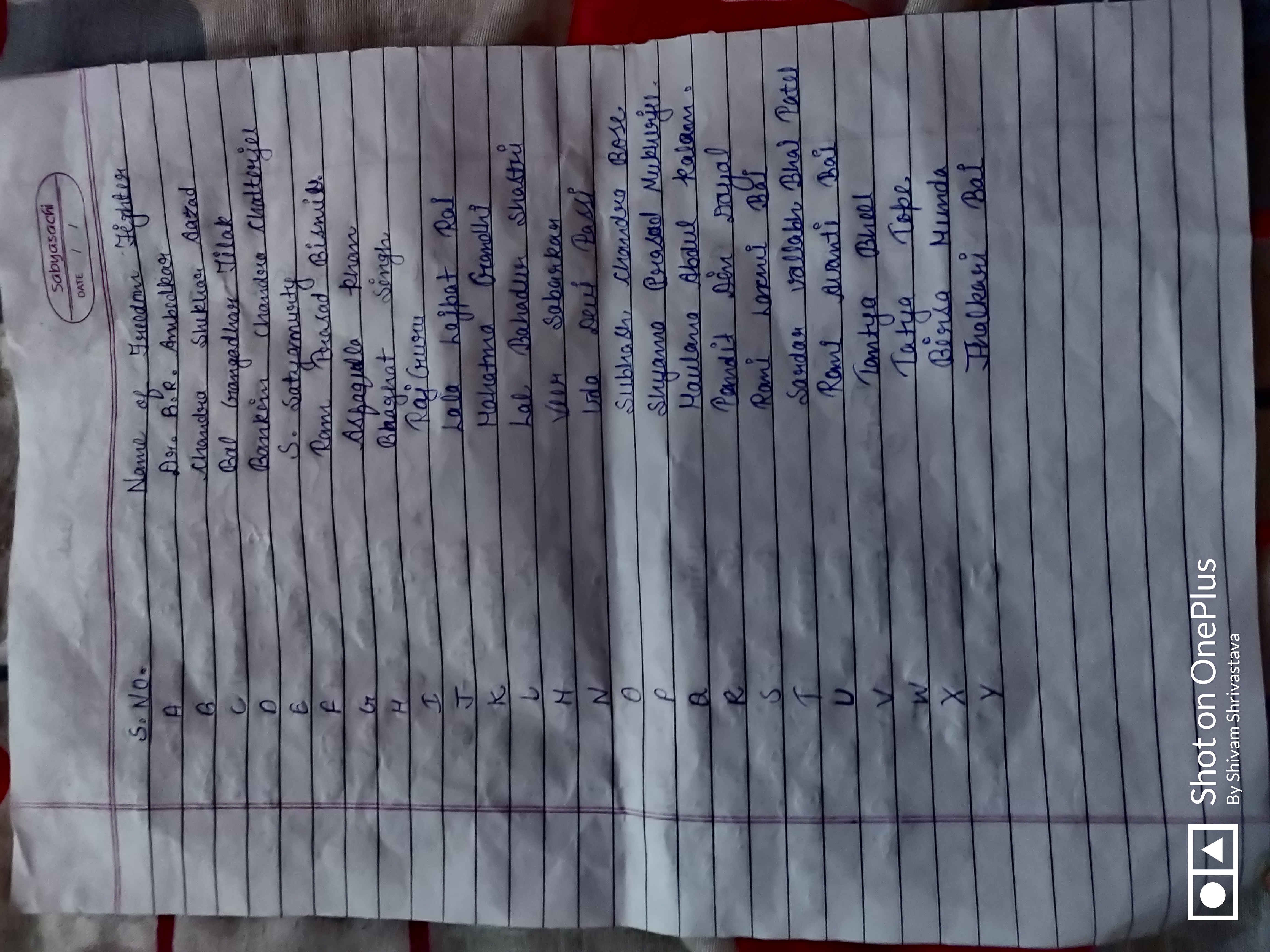 Name of Freedom Fighters
